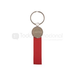 Llavero con correa de termo PU y placa de acero inoxidable con arillo reforzado de metal. Presentación: Caja individual de kraft.