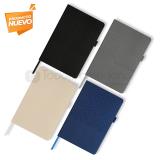 Libreta con 80 hojas a raya. Cubierta rígida con dos tipos de textura: una con diseño en termograbado y otra lisa. Incluye elástico para bolígrafo y separador de hojas. Bolígrafo no incluido.